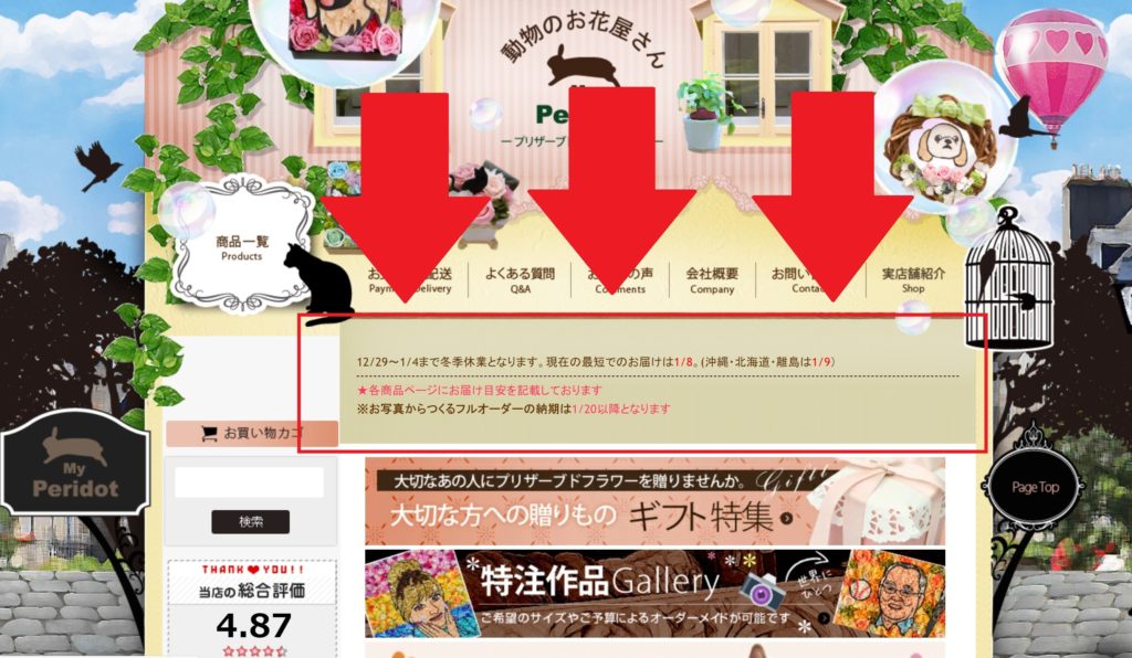 マイペリドットでお買い物をする際は、納期のチェックをしてください。