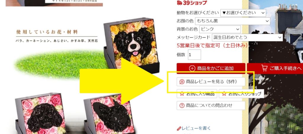 商品ごとの口コミ、お店全体への口コミがあるので、見ておいてくださいね。