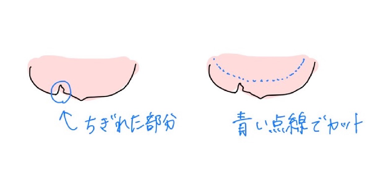 カットのコツですが、次の画像を参考にしてください。