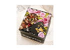箱の中にラッピングされたお花やメッセージカードが入っております。