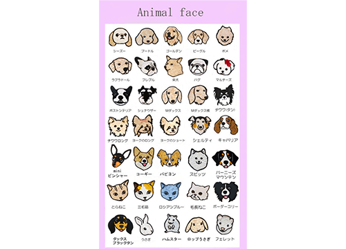 ビーグル、シュナウザー、シーズー、キャバリア、コーギー、バーニーズMt、ボーダーコリー、パピヨン、ピンシャー、シェルティ、三毛猫、チワワ(タン)、ダックスブラックタン