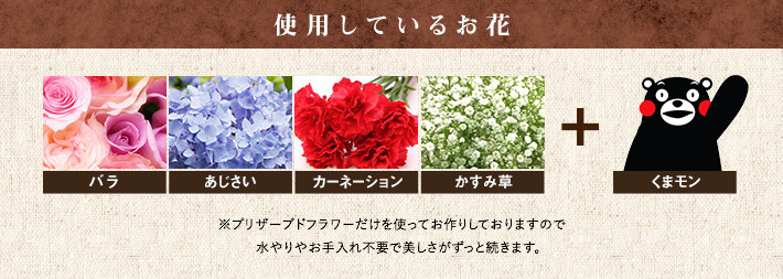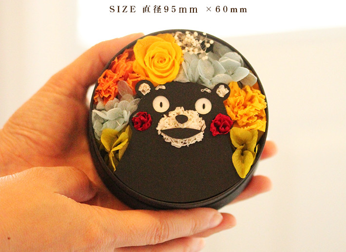 サイズ:直径95mm × 60mm 押しも押されぬ熊本県の人気キャラクター「くまモン」がフラワーBOXになりました♪ この商品は1個お買い上げごとに震災義援金として200円を日本赤十字社をとおして寄付させていただきます。 使用しているお花:バラ、カーネーション、あじさい、かすみ草 ラッピングしてお届けします。 誕生日 プレゼント 結婚祝い 記念日 母の日 父の日 お祝い 対応