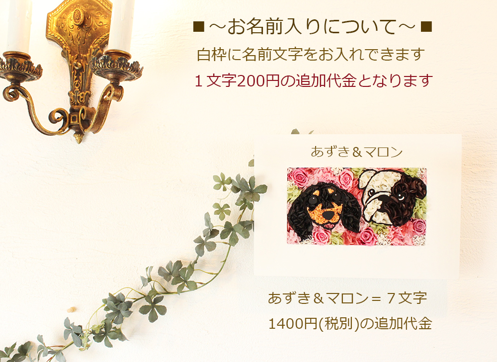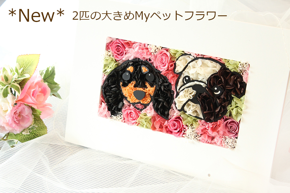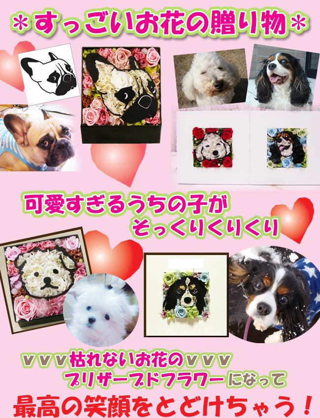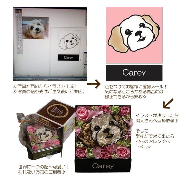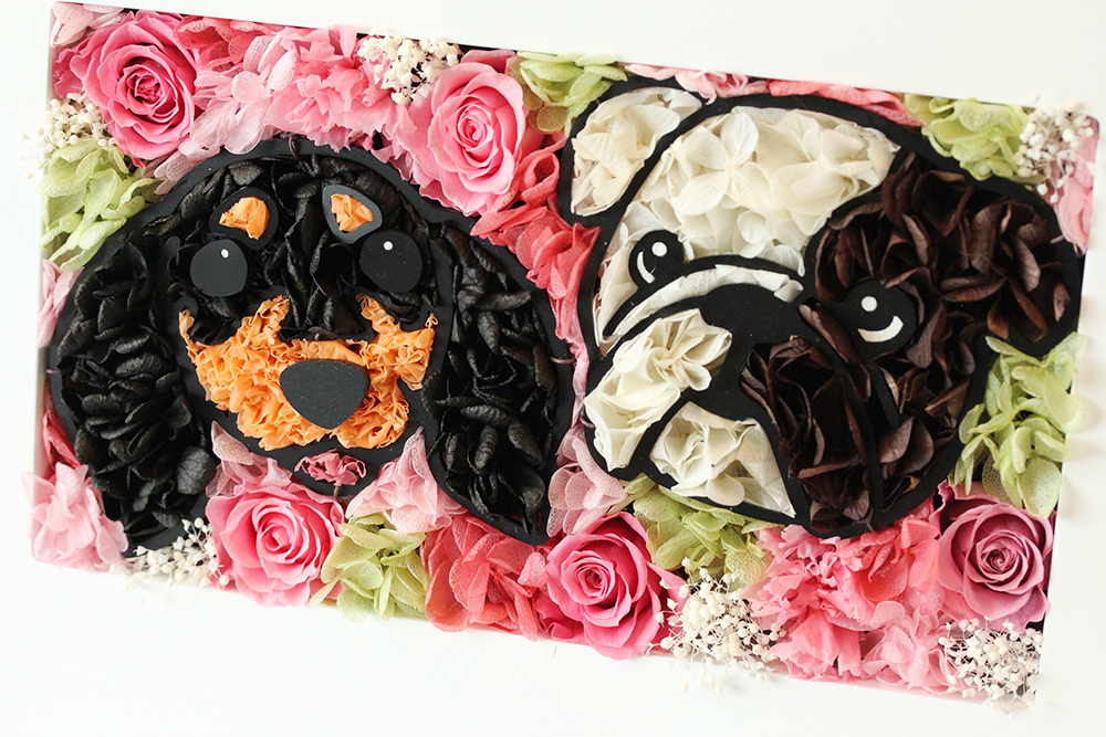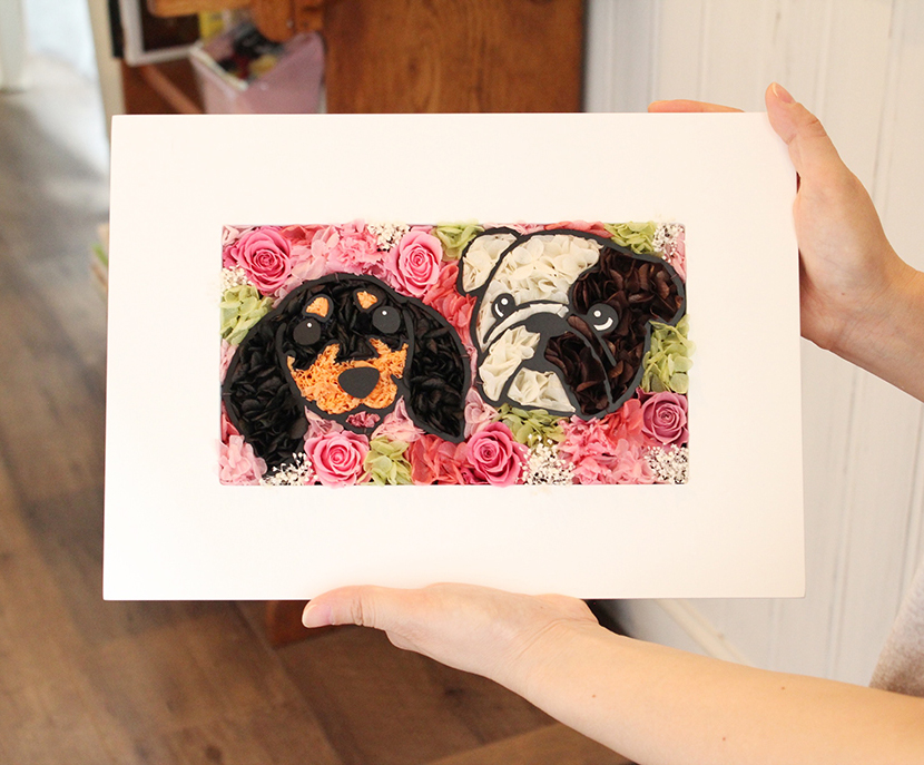 枯れない魔法のお花で作る、かわいいペットの似顔絵フラワー。