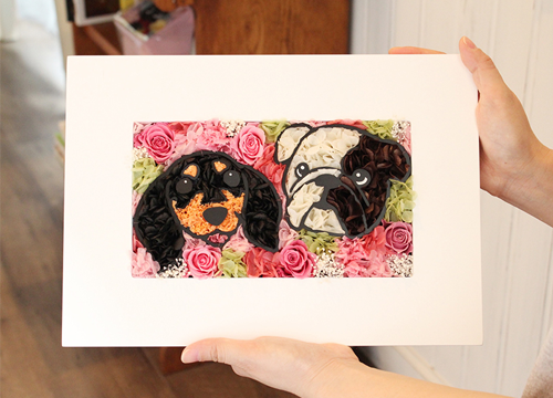 枯れない魔法のお花で作る、かわいいペットの似顔絵フラワー。